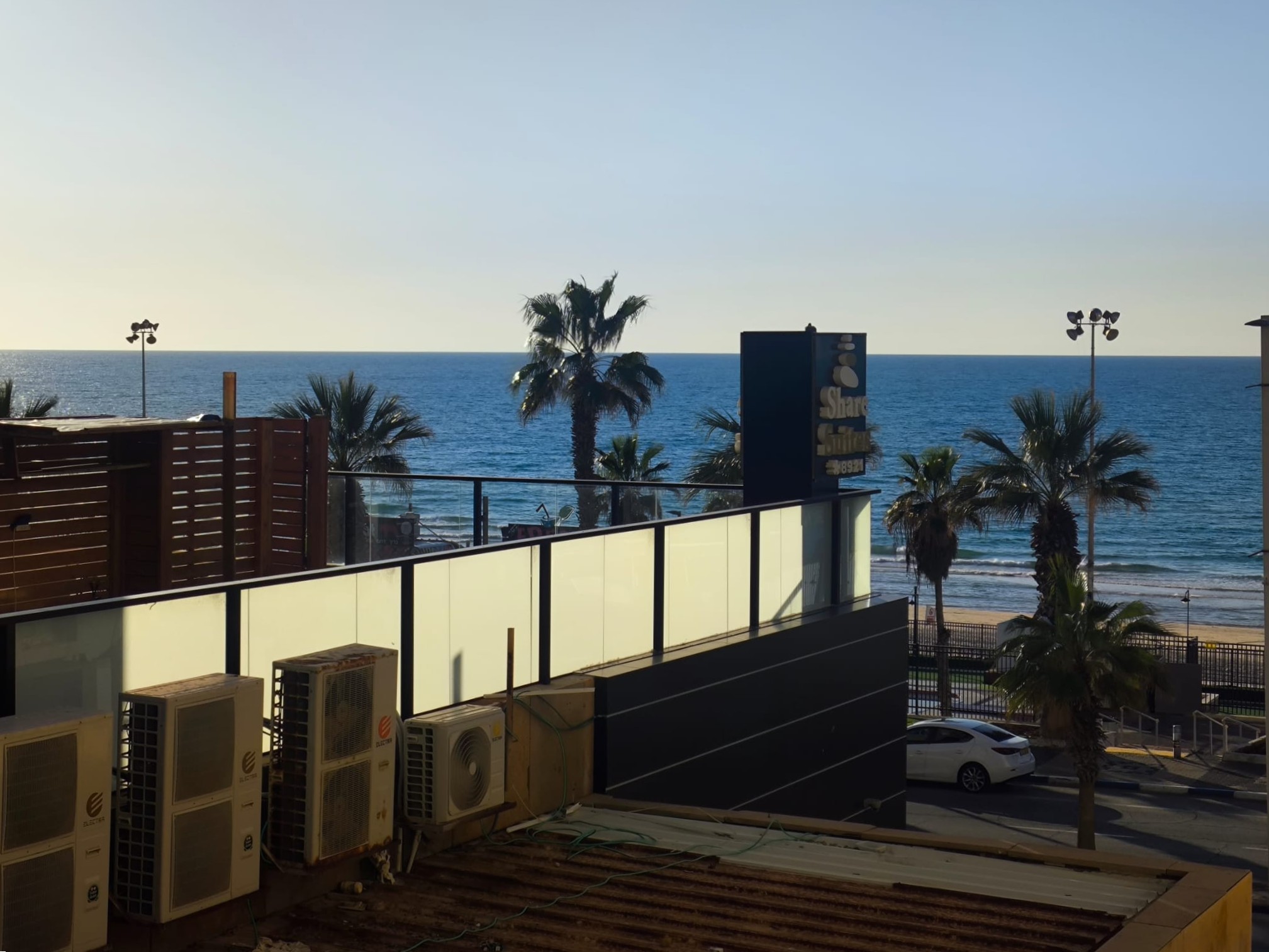 מהחלונות נשקף נוף פתוח וישיר לים.